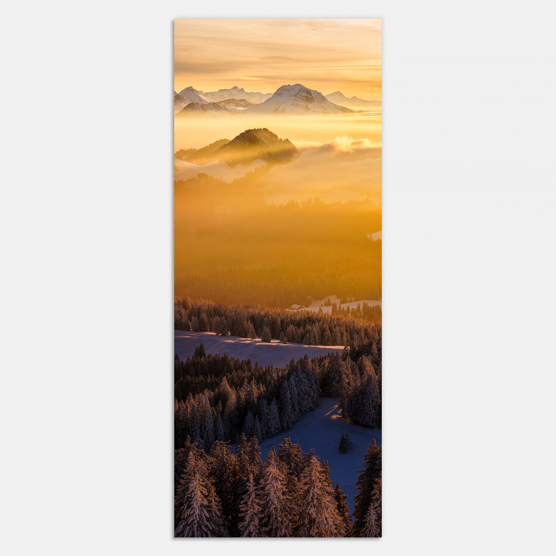 The Molélon's unmistakable shape and presence within the landscape is highlighted in this unusual high-resolution vertical format panoramic fine art print. Perfect as a showpiece at the end of a hallway or other area where horizontal space is limited but vertical space is in abundance. This fine art print is a real head turner.