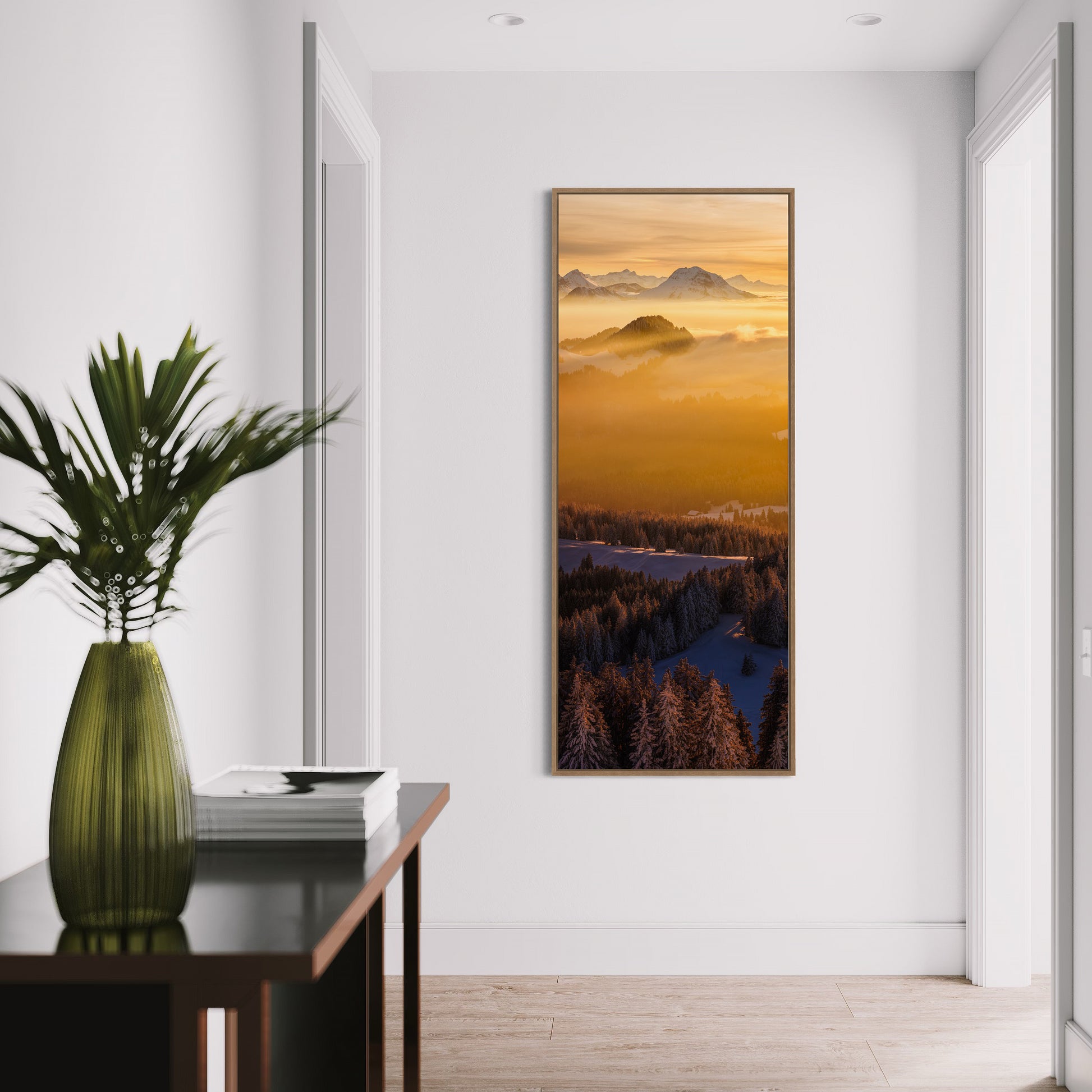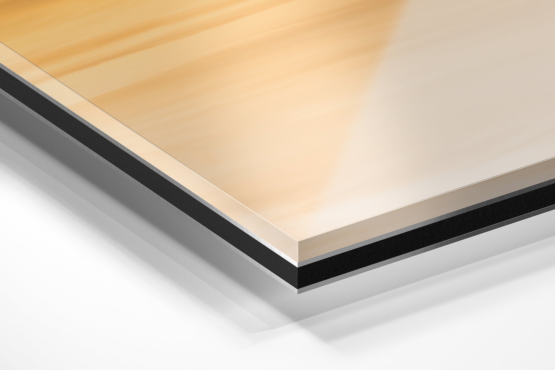The ultimate. Fine art paper sandwiched between an aluminium composite panel and a high-quality optically clear acrylic with a gloss finish. Delivered flat and supplied with a solid wood frame. For more information, click here