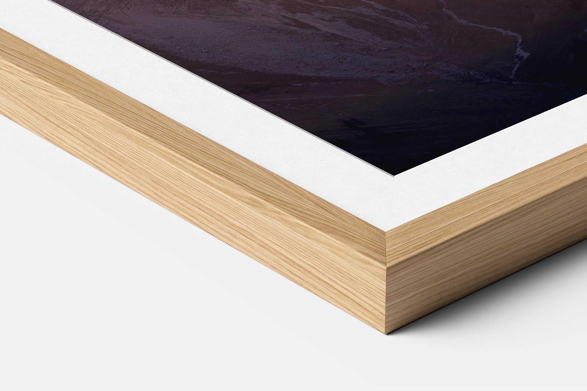 The ultimate. Fine art paper sandwiched between an aluminium composite panel and a high-quality optically clear acrylic with a gloss finish. Delivered flat and supplied with a solid wood frame. For more information, click here