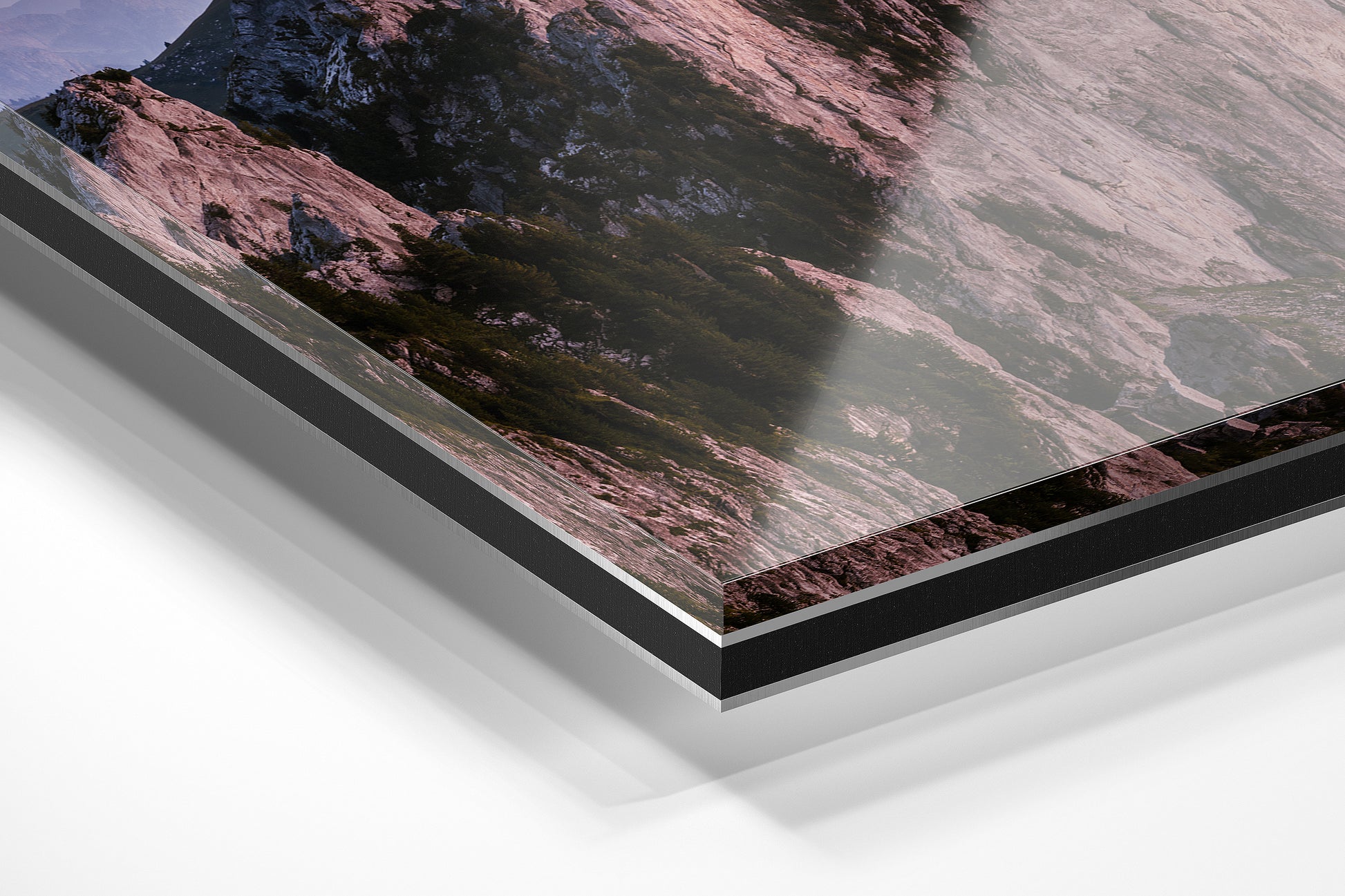 The ultimate. Fine art paper sandwiched between an aluminium composite panel and a high-quality optically clear acrylic with a gloss finish. Delivered flat and supplied with a solid wood frame. For more information, click here