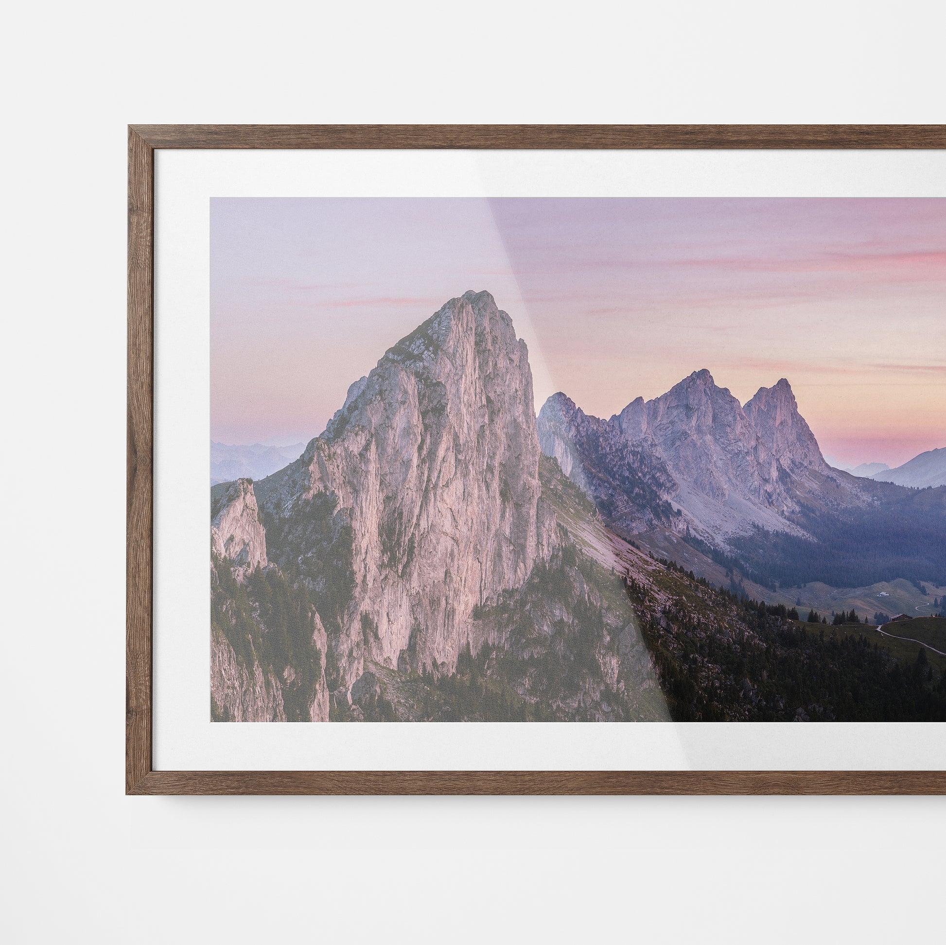 On this particular evening, the light conditions were such that the last of the sun painted the mountains before me in soft purple pastel hues. This calming and soft toned fine art print can suit a variety of locations and interior styles in your home.
